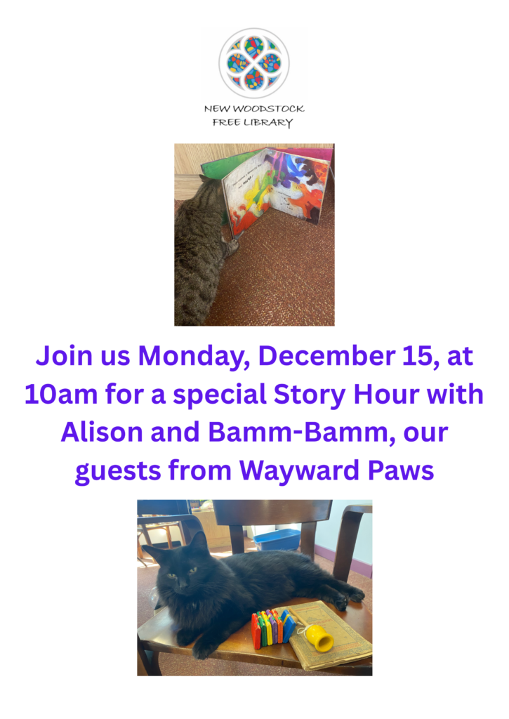 Join us on Monday, December 15th, at 10:00 a.m. for a special Story Hour with Alison and Bamm-Bamm, our guests from Wayward Paws.