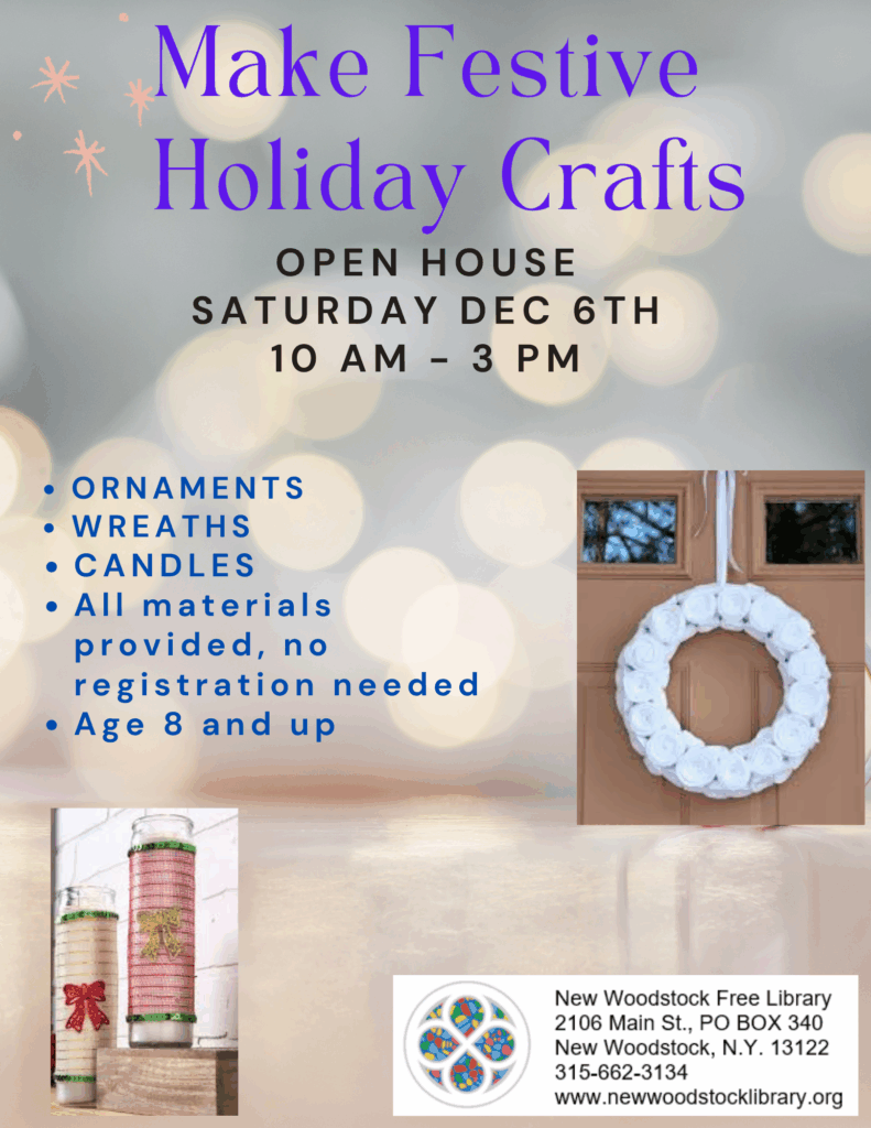 On Saturday, December 6th, from 10:00 a.m. ’til 3:00 p.m., come to our Open House to make festive holiday crafts, such as: